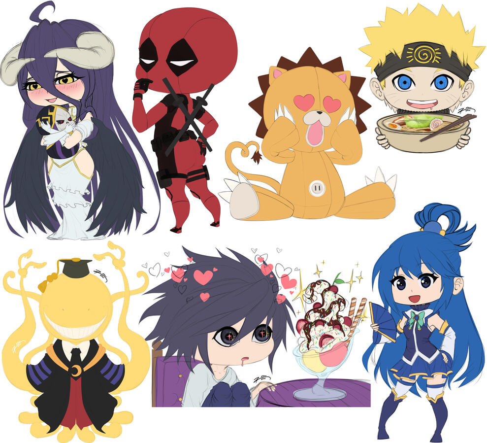 Samples of some fully rendered illustrations that I did over the years and below some fully rendered chibis.Chibi HB: 45€