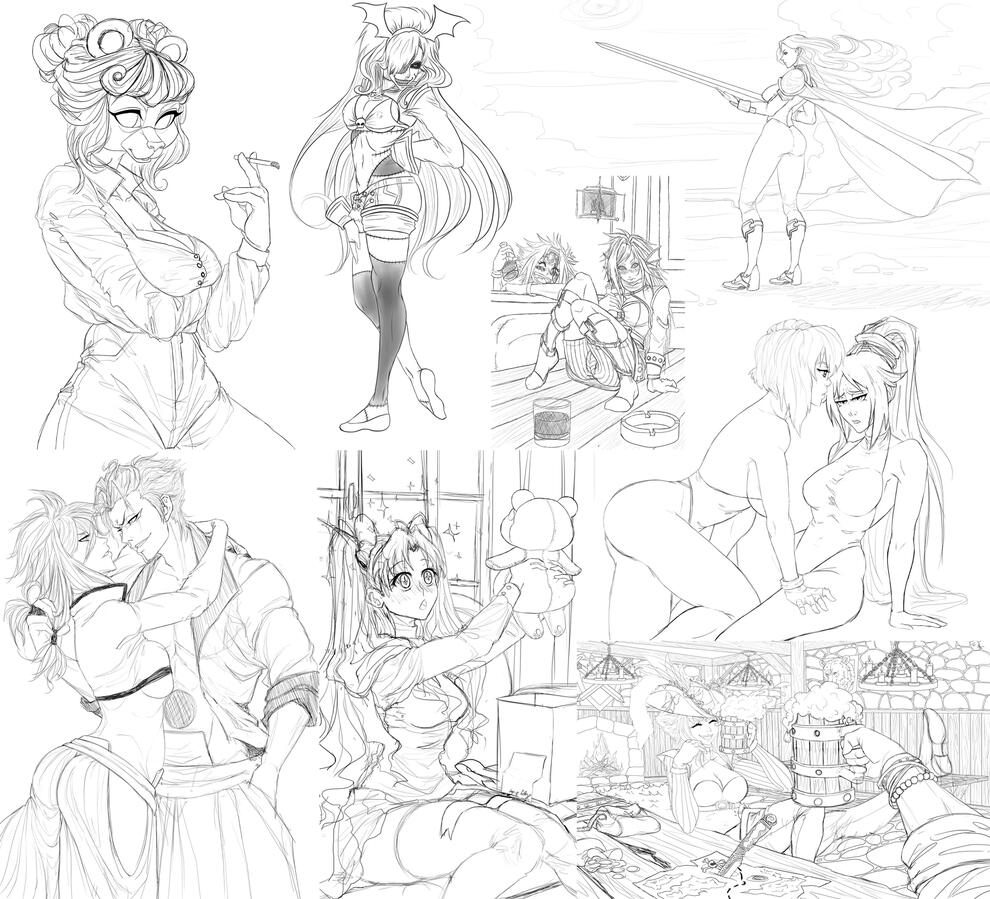 I don't have many of these as usually after sketching I move straight to coloring to avoid having to lineart XD because it's a pain to do this in photoshop.Chibi HB Lineart: 20€