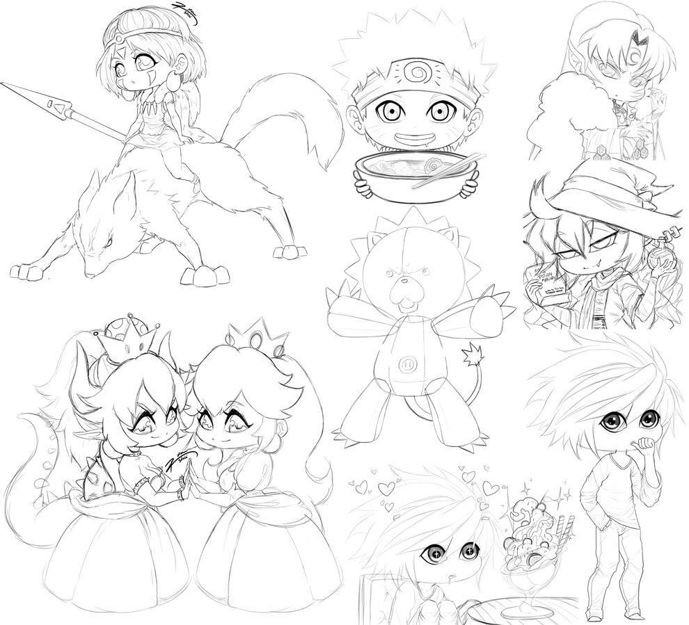 I don't have many of these as usually after sketching I move straight to coloring to avoid having to lineart XD because it's a pain to do this in photoshop.Chibi HB Lineart: 20€