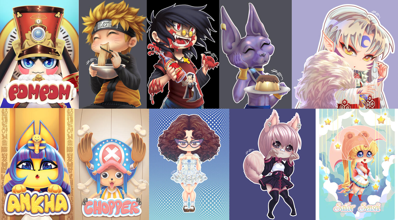 Samples of some fully rendered illustrations that I did over the years and below some fully rendered chibis.Chibi HB: 45€